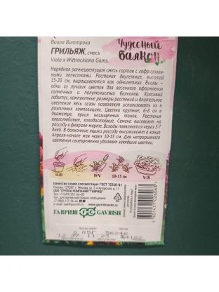 Семена Цветы, Виола, Грильяж, 0.05 г, Чудесный балкон, цветная упаковка, Гавриш