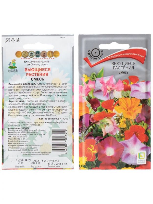Семена Цветы, Вьющиеся растения, Смесь, 0.8 г, цветная упаковка, Поиск