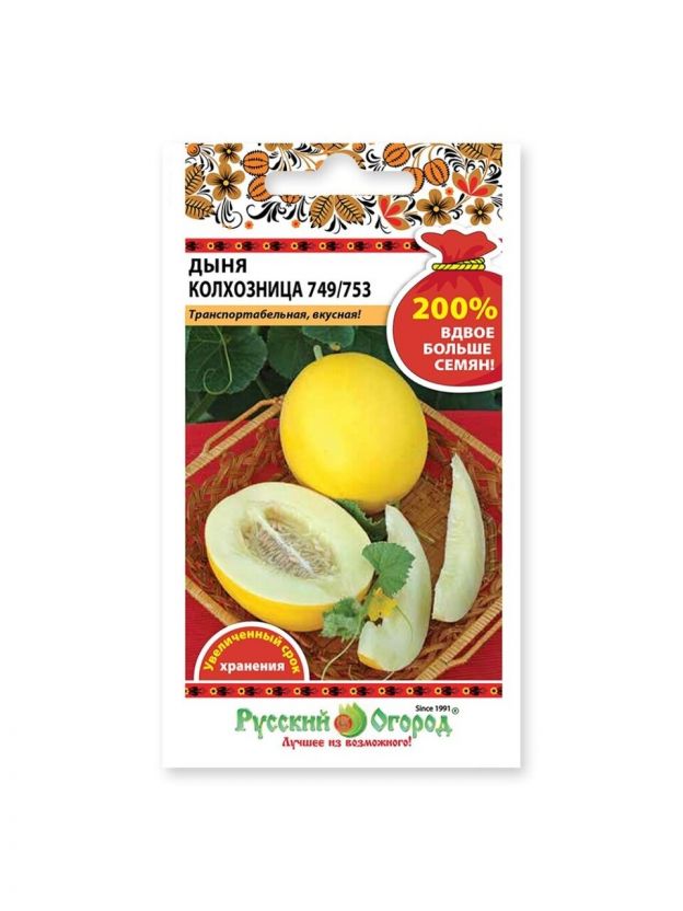 Семена Дыня, Колхозница 749/753, 2 г, 200% NEW, цветная упаковка, Русский огород