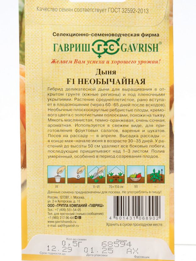 Семена дыни Необычайная F1 0.5 г от Гавриш: получите сладкий урожай уже через 70 дней! Идеально для дачи и теплицы, экономия времени и места.