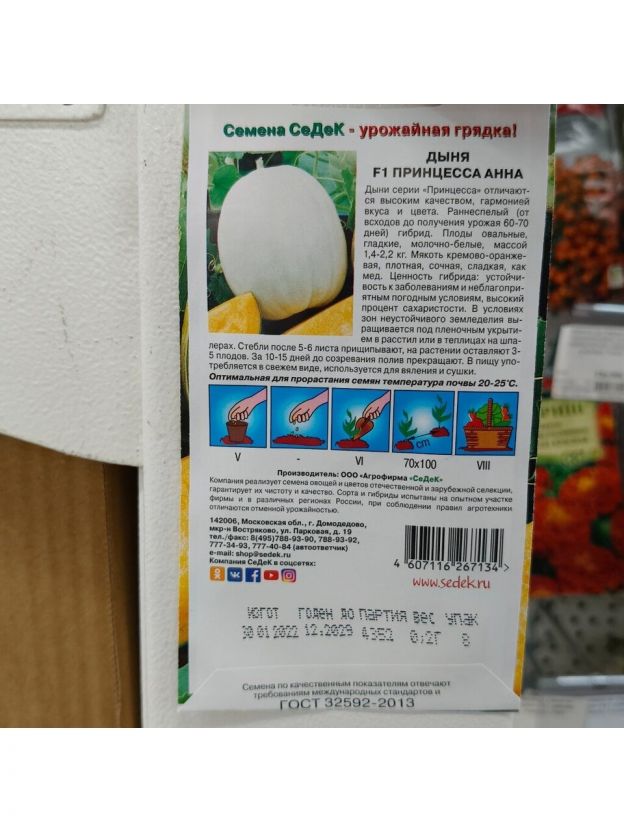 Семена дыня Анна F1 от Седек - это идеальное сочетание качества и вкуса, выращенное в России.