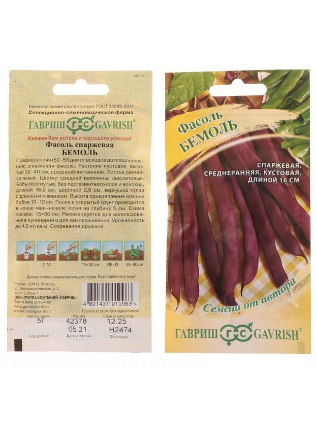 Семена Фасоль, Бемоль, 5 г, Семена от автора, авторские, цветная упаковка, Гавриш
