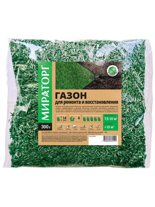 Семена Газон, Газон для ремонта и восстановления, 300 г, пакет, Мираторг