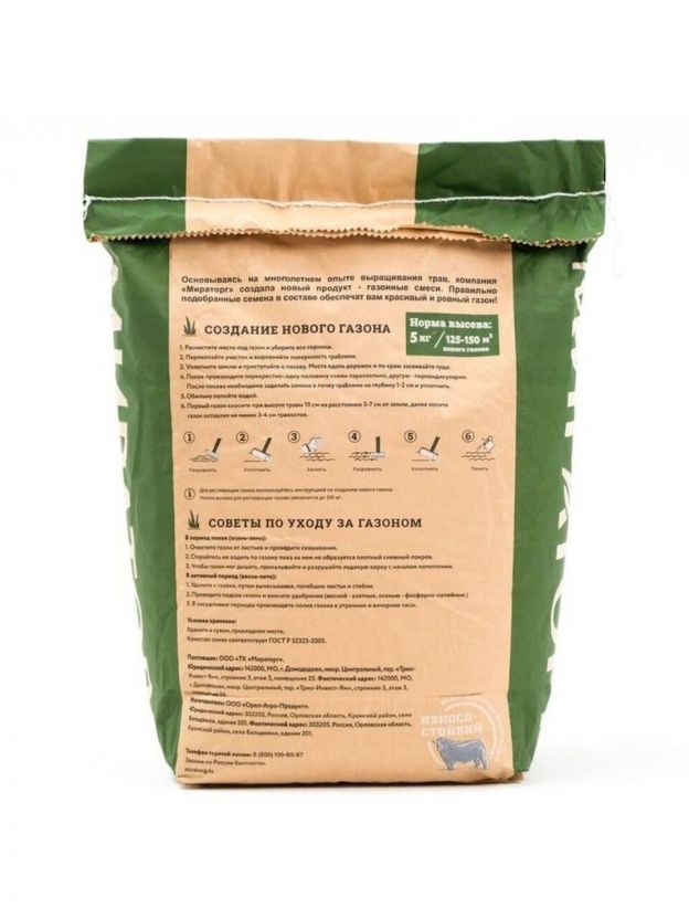 - Расход: 1 кг на 25-30 м2 нового газона;