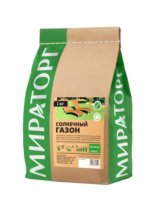 Семена Газон, Солнечный, 1 кг, мешок, Мираторг