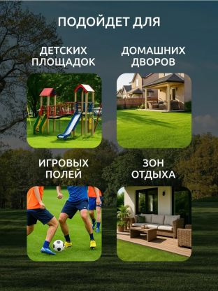 Подобранные составе семена образуют густой травостой, крепкую дернину и быстрорастущие побеги, позволяющие газону восстанавливаться после интенсивного использования (вытаптывание, механические повреждения).