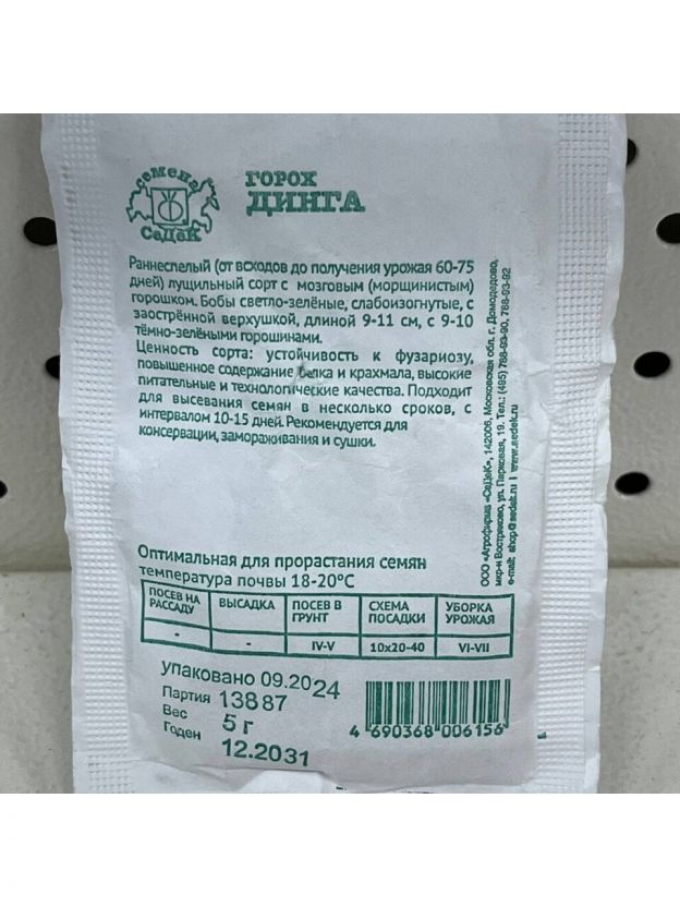 Семена Горох, Динга, 5 г, дружное созревание, белая упаковка, Седек