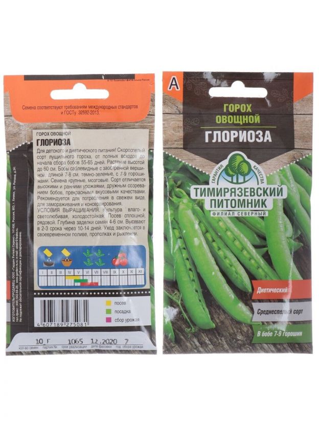 Семена Горох, Глориоза диетический, 10 г, цветная упаковка, Тимирязевский питомник