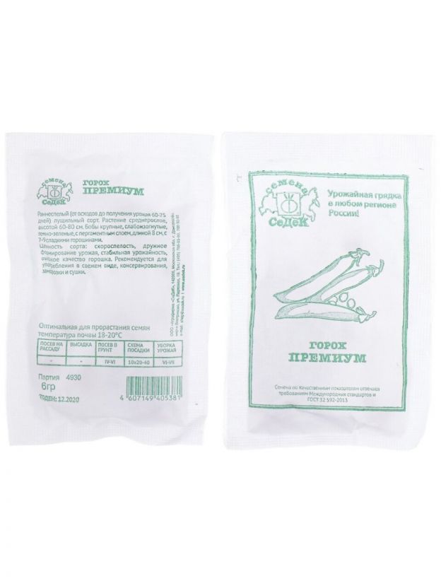 Семена Горох, Премиум, 6 г, белая упаковка, Седек