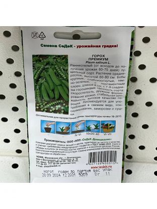 Раннеспелый (от всходов до получения урожая 60-75 дней) лущильный сорт. Растение среднерослое, высотой 60-80 см. Бобы крупные, слабоизогнутые, темно-зеленые, с пергаментным слоем, длиной 8 см, с 7-9 сладкими горошинами.