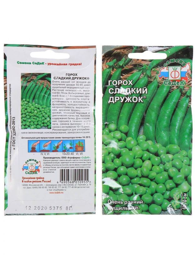 Очень ранний (от всходов до получения урожая 55-65 дней) лущильный морщинистый сорт.
