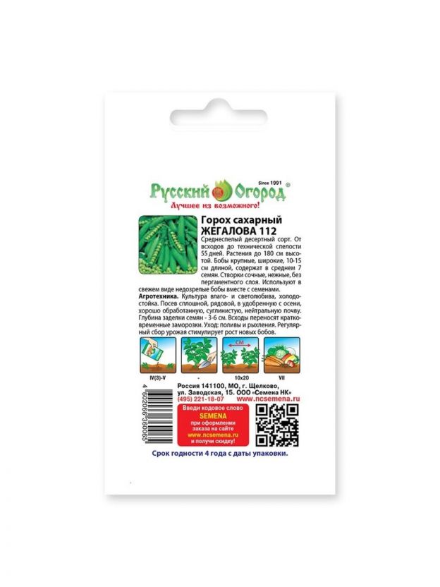 Семена Горох, Жегалова 112, 8 г, цветная упаковка, Русский огород