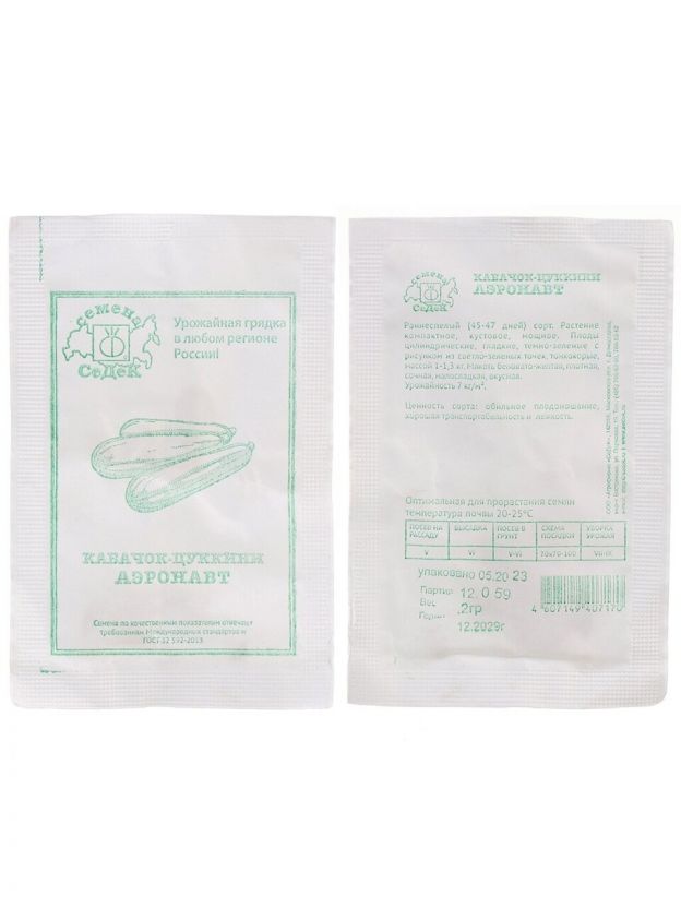 Кабачок Аэронавт раннеспелый сорт. От всходов до технической спелости проходит около 45-47 дней. Растение компактное, кустовое, мощное. Плоды цилиндрические, гладкие, темно-зеленые с рисунком из светло-зеленых точек, тонкокорые, массой 1-1,3 кг. Мякоть беловато-желтая, плотная, сочная, мало сладкая, вкусная.