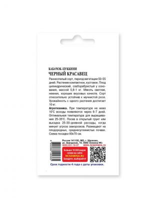 Семена Кабачок-цуккини, Чёрный Красавец, 2 г, цветная упаковка, Русский огород