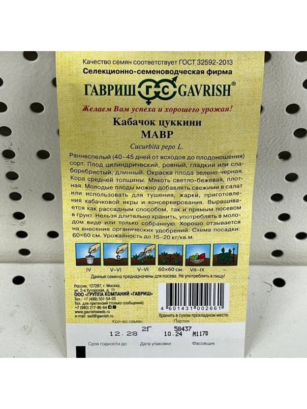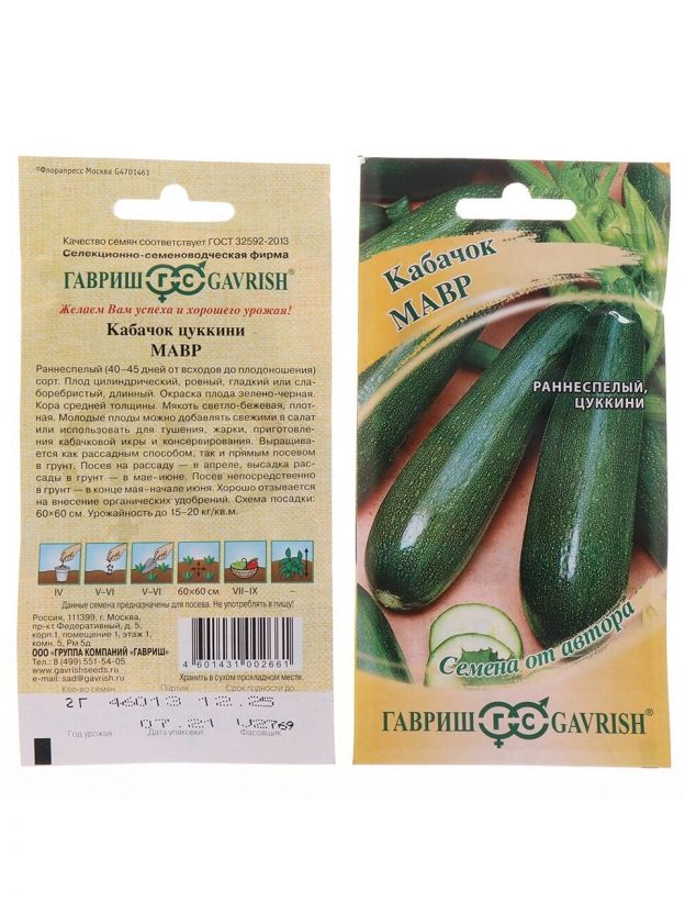 Семена Кабачок-цуккини, Мавр, 2 г, Семена от автора, цветная упаковка, Гавриш