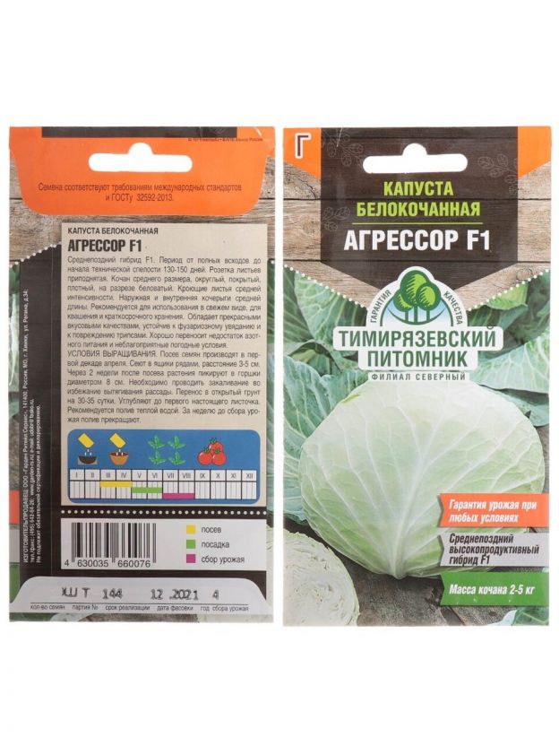 Семена Капуста белокочанная, Агрессор F1, цветная упаковка, Тимирязевский питомник