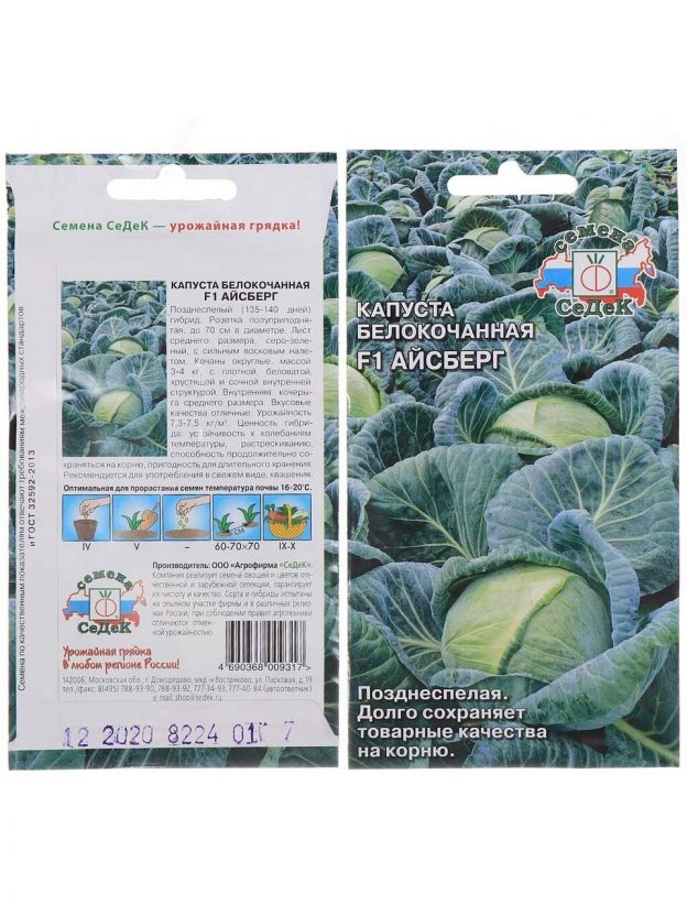 Семена капусты Айсберг F1 ЦВ — урожайная белокочанная капуста для позднего сбора: высокая всхожесть, свежесть круглый год, оптимальна для дачи и хранения.