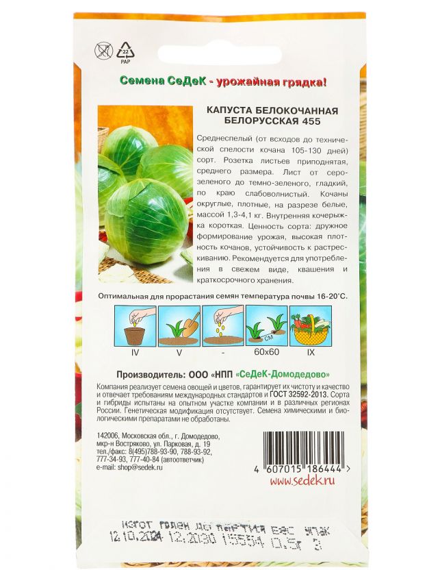 Закажите семена капусты Белорусская 455 Седек — получите урожай без лишних хлопот.