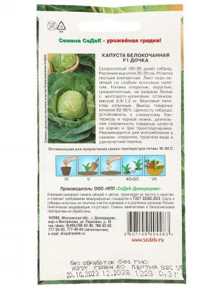 Часто спрашивают: «Как использовать эти семена?» — просто: посейте в подготовленную почву, и уже через два месяца вы получите свежую, сочную капусту для салатов, тушения и заготовок. В отличие от аналогичных сортов, «Дочка F1» не требует сложного ухода, устойчива к перепадам температуры и подходит даже для начинающих огородников. Цветная упаковка защищает семена от света и сохраняет всхожесть, что важно для долгого хранения.