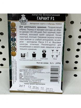 Семена Капуста белокочанная, Гарант F1, 0.2 г, цветная упаковка, Поиск