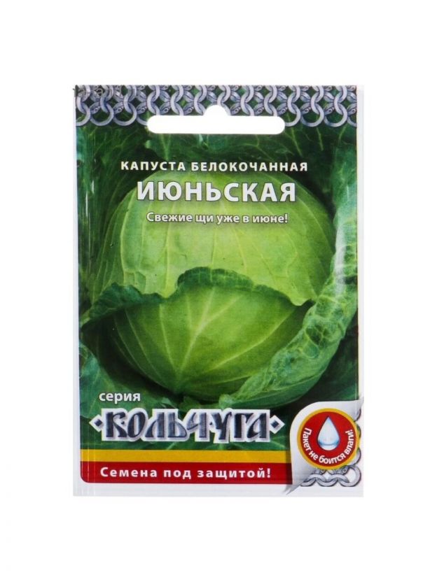 Семена Капуста белокочанная, Июньская, 0.5 г, Кольчуга, цветная упаковка, Русский огород