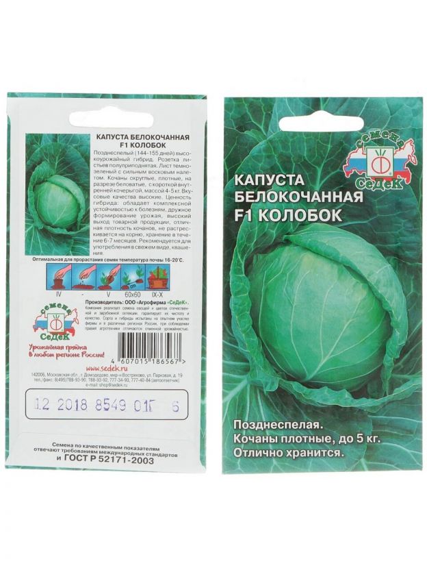 Семена Капуста белокочанная, Колобок F1, цветная упаковка, Седек