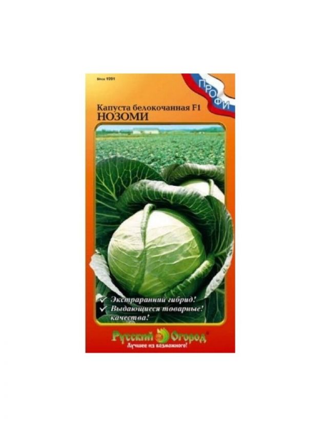 Семена Капуста белокочанная, Нозоми F1, 0.02 г, цветная упаковка, Русский огород