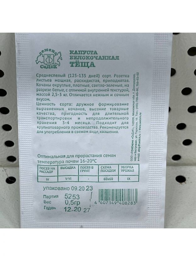 Семена Капуста белокочанная, Тёща, 0.5 г, белая упаковка, Седек