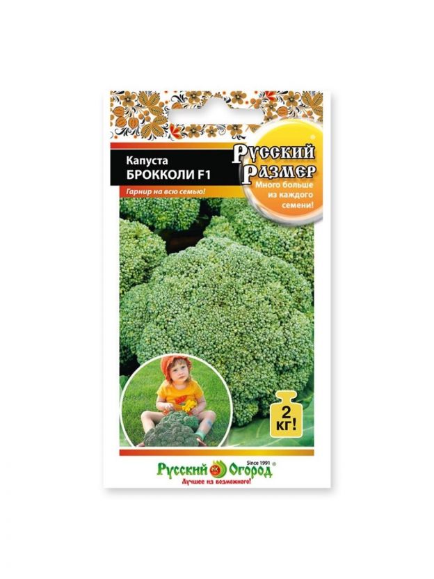 Семена Капуста брокколи, Русский размер F1, цветная упаковка, Русский огород