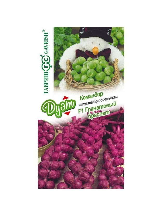 Семена Капуста брюссельская, Дуэт, 1 г, Гранатовый браслет F1 + Командор 1 г, цветная упаковка, Гавриш