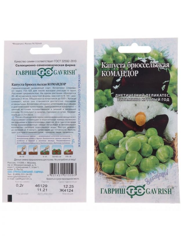 Семена Капуста брюссельская, Командор, 0.2 г, Заморозь!, цветная упаковка, Гавриш
