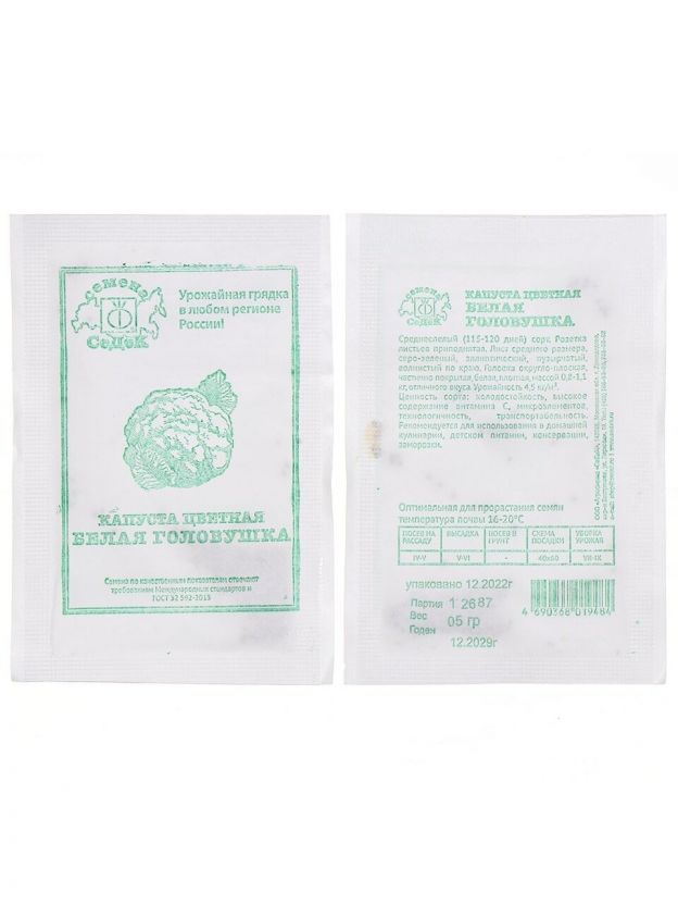 Семена Капуста цветная, Белая головушка, 0.5 г, МФ, белая упаковка, Седек