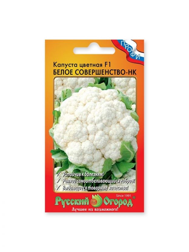 Семена Капуста цветная, Белое совершенство-НК F1, цветная упаковка, Русский огород