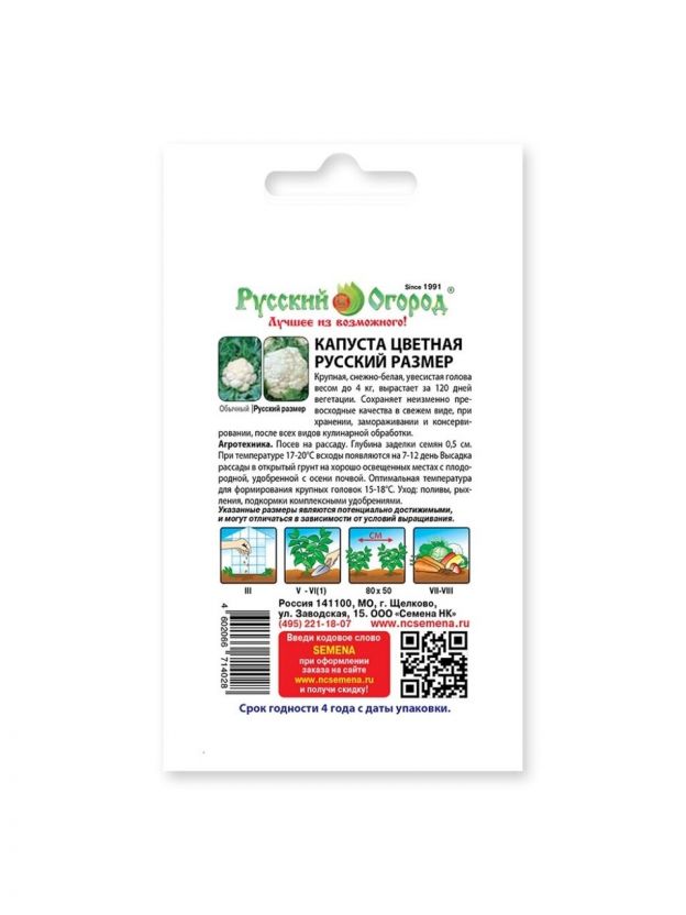 Откройте для себя идеальный выбор для вашего огорода — семена цветной капусты "Русский размер" от бренда "Русский огород". Это предложение для тех, кто ценит качество и хочет получить богатый урожай.