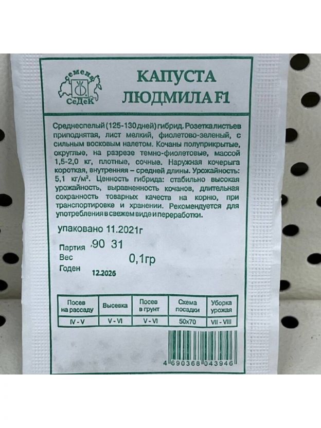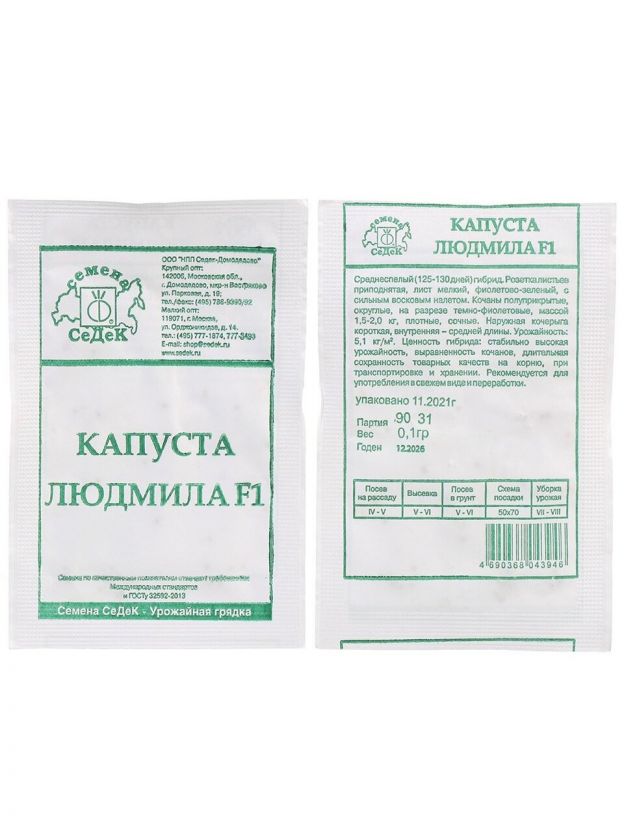 Семена Капуста краснокочанная, Людмила F1, 0.1 г, белая упаковка, Седек