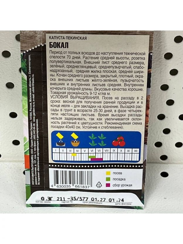 Представляем семена пекинской капусты "Бокал" от Тимирязевского питомника. Эта культура станет идеальным выбором для любителей свежих овощей. Удобная цветная упаковка и среднеспелая скорость созревания делают этот продукт отличным выбором для огородников.