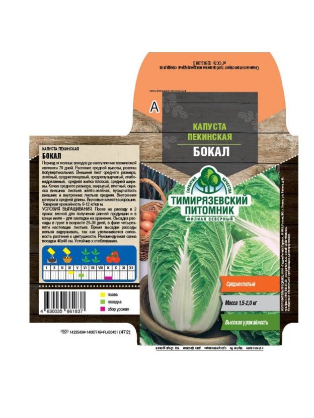 Семена Капуста пекинская, Бокал, 0.3 г, цветная упаковка, Тимирязевский питомник