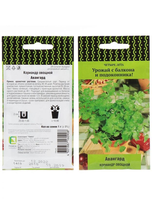 Семена Кинза, Авангард, 1 г, Четыре лета, овощные, цветная упаковка, Поиск