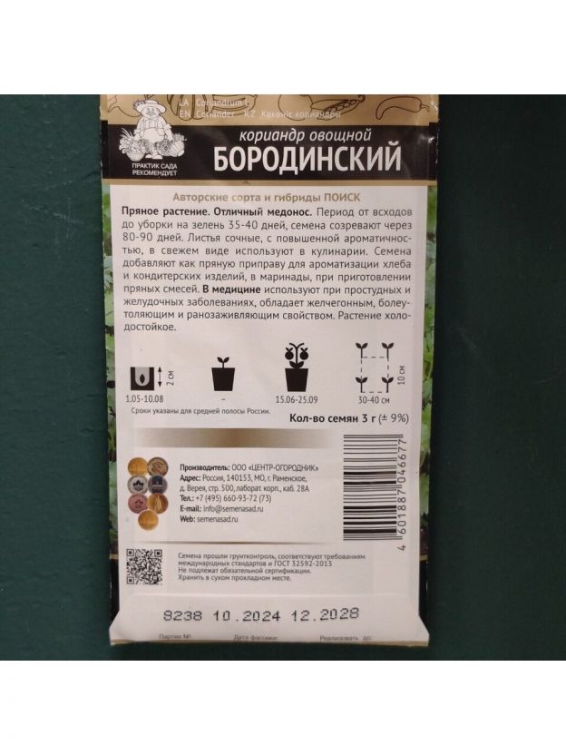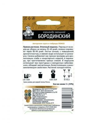 Семена Кинза, Бородинская, 3 г, овощные, цветная упаковка, Поиск