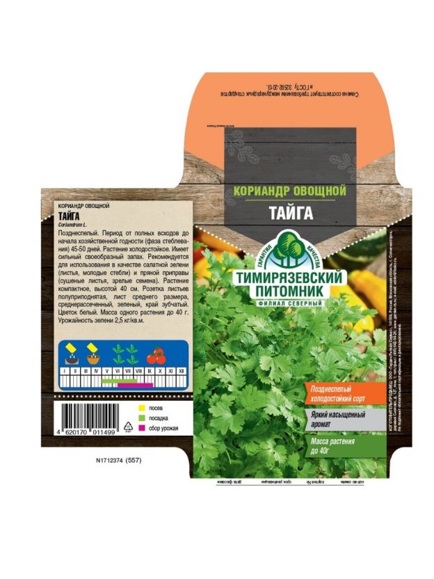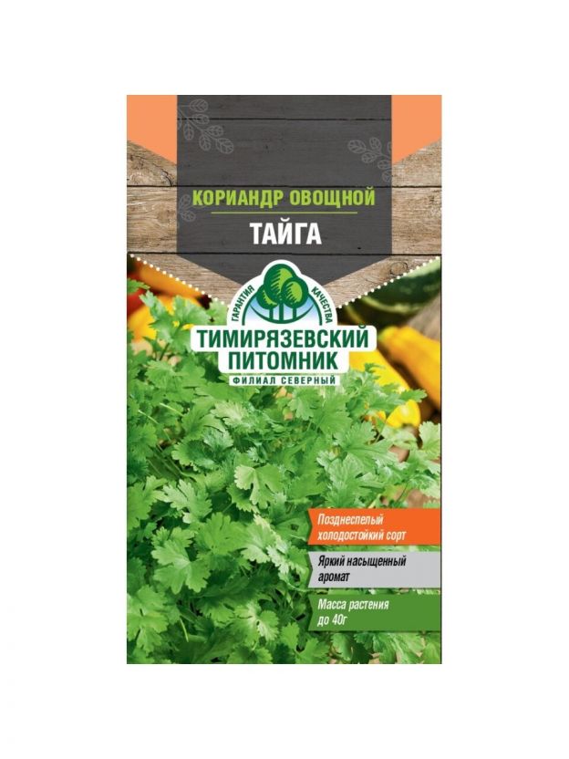 - Семена кинзы Тайга — авторитет от Тимирязевского питомника, гарантированная свежесть и чистота сорта.