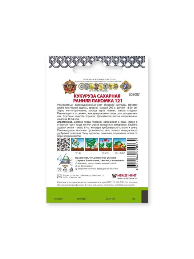 Семена Кукуруза, Сахарная Ранняя лакомка 121, 5 г, Кольчуга, цветная упаковка, Русский огород