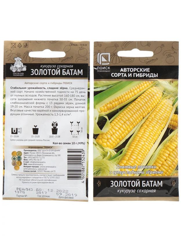 Семена Кукуруза, Золотой батам, 10 г, сахарная, цветная упаковка, Поиск