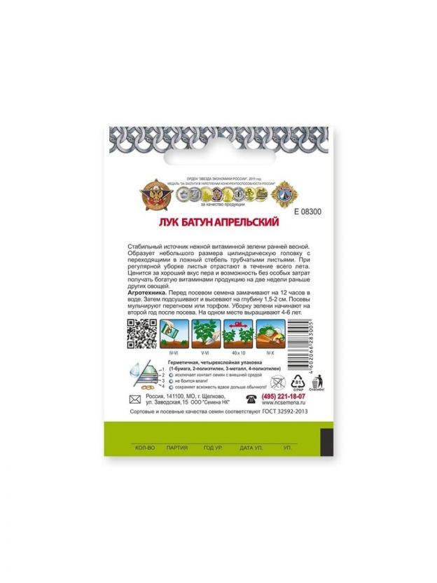 Семена Лук батун, Апрельский, 1 г, Кольчуга, цветная упаковка, Русский огород