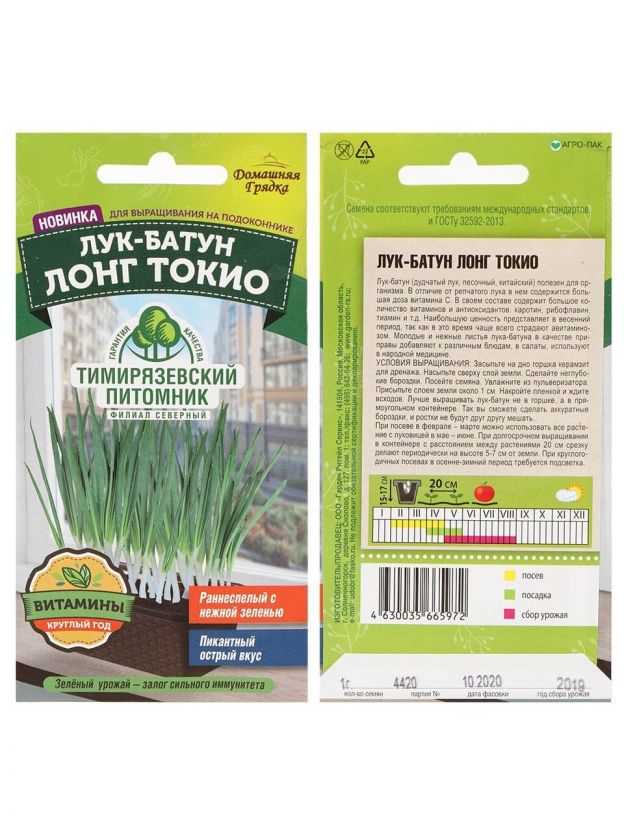 Семена Лук батун, Лонг Токио, 1 г, Домашняя грядка, цветная упаковка, Тимирязевский питомник