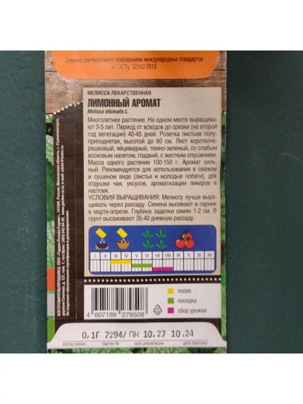Семена Мелисса, Лимонный аромат, 0.1 г, цветная упаковка, Тимирязевский питомник