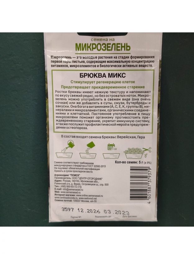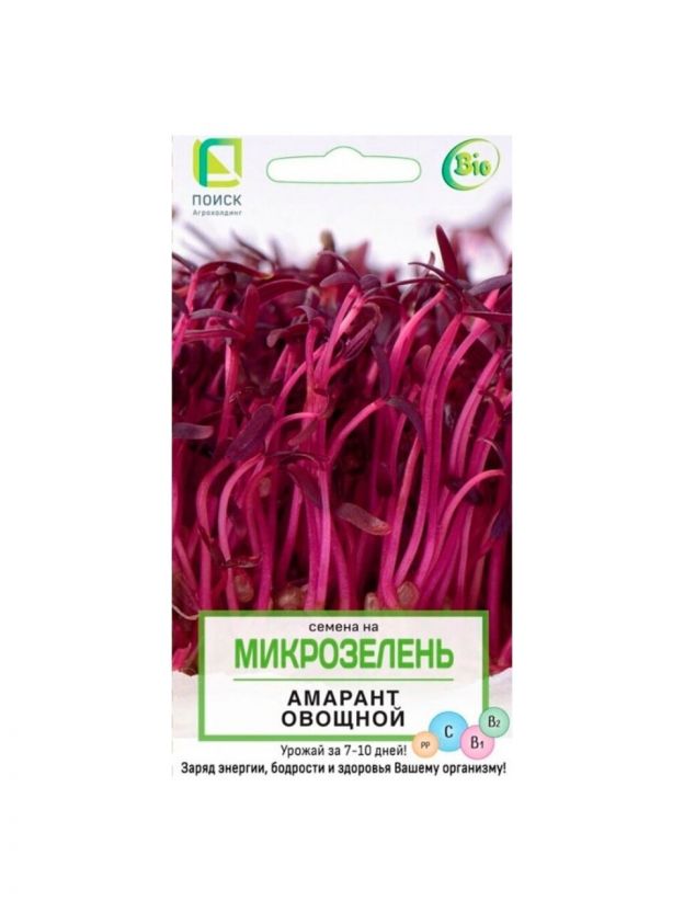 Семена Микрозелень, Амарант овощной, 1 г, цветная упаковка, Поиск