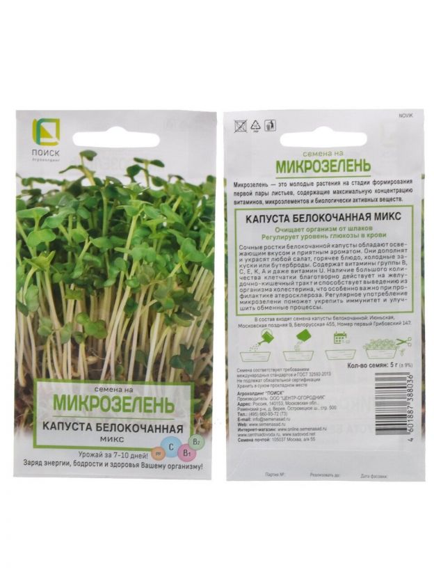 Семена Микрозелень, Капуста белокочанная, 5 г, Поиск