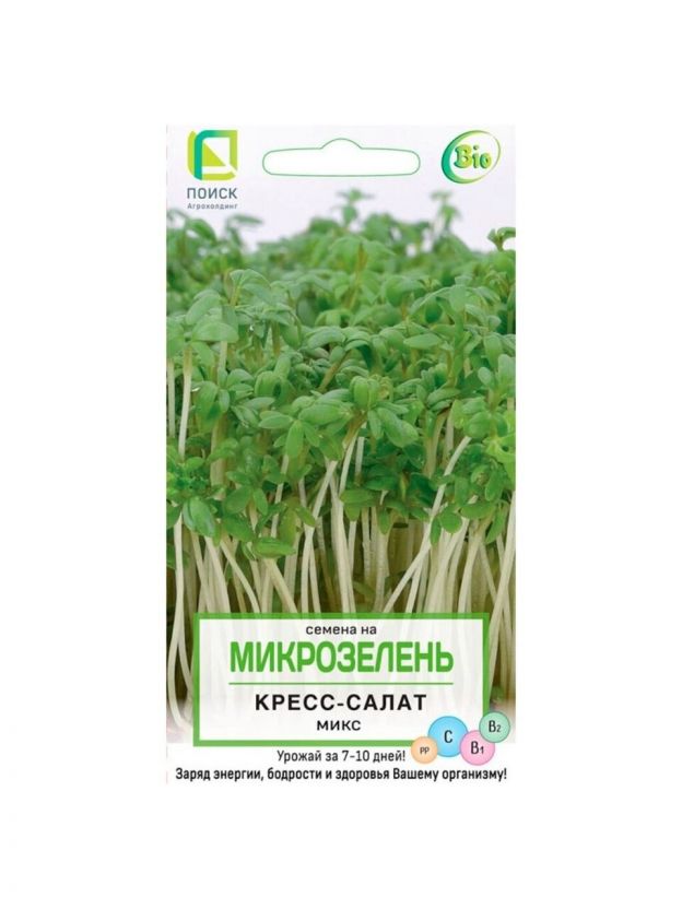 Семена Микрозелень, Кресс-салат Микс, 5 г, цветная упаковка, Поиск