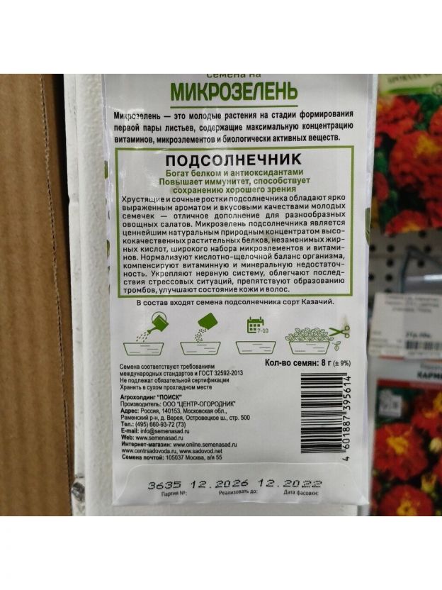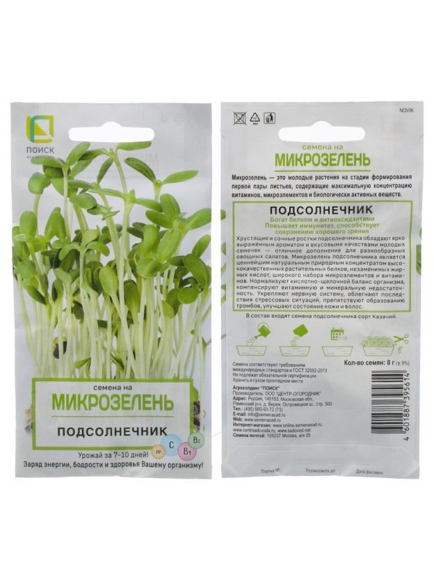 Семена Микрозелень, Подсолнечник, 8 г, Поиск