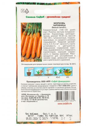 Семена моркови Чаровница Седек — это оптимальный выбор для тех, кто ищет, какие семена моркови лучше выбрать для дачи или огорода. Среднеспелый сорт гарантирует стабильный урожай даже при переменчивых погодных условиях. Упаковка с цветной маркировкой защищает семена от влаги и света, сохраняя их свежесть.